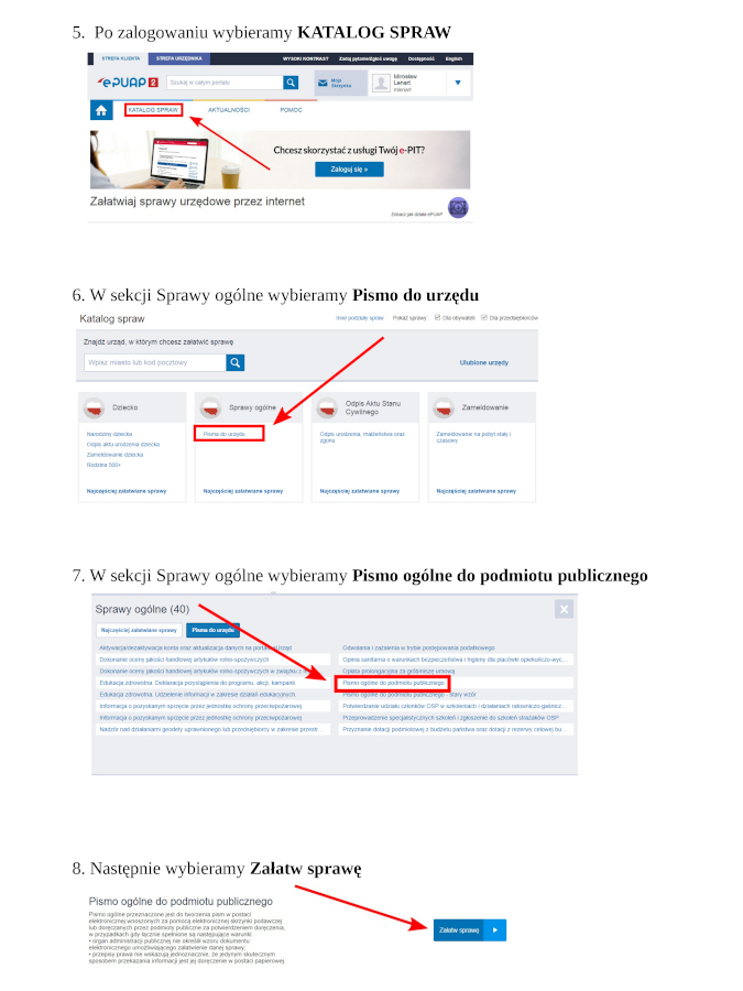 Instrukcja przykładowej wysyłki pisma do Urzędu Gminy w Niebylcu za pośrednictwem platformy e-PUAP